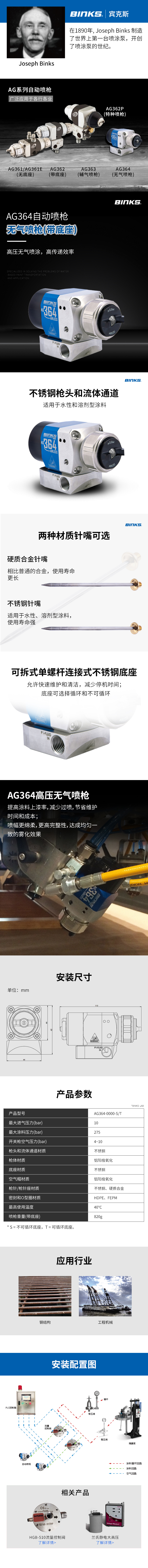 美国BINKS宾克斯AG364高压无气自动喷枪雾化均匀