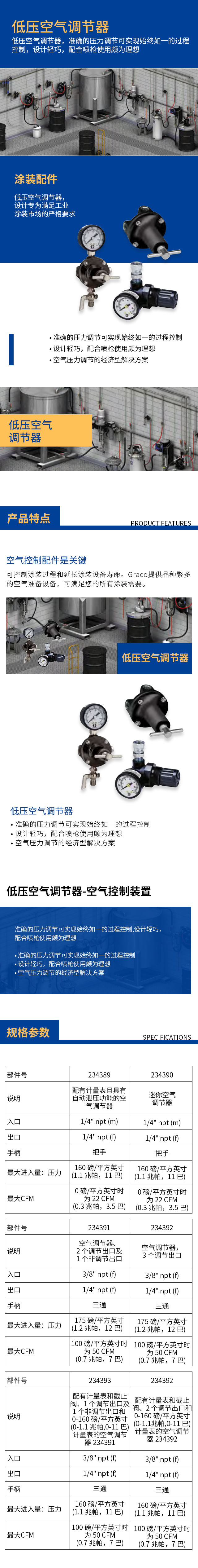 美国GRACO固瑞克低压空气调节器稳压阀背压阀
